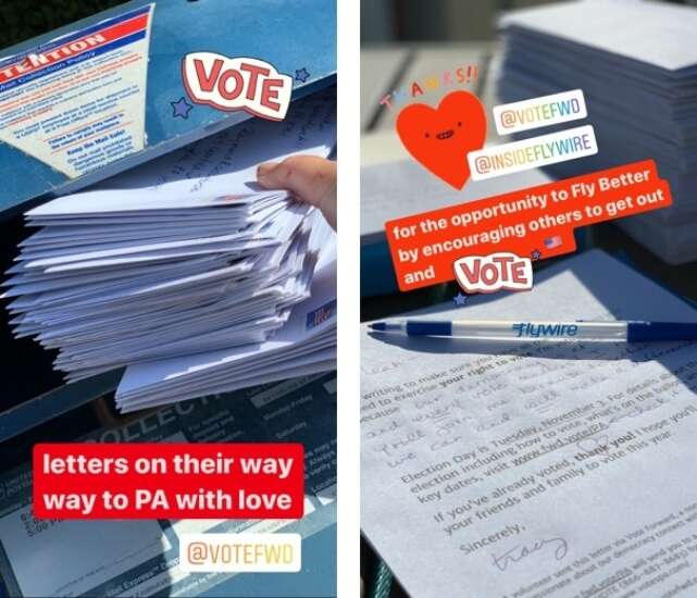 “I used my FlyBetter days to write “Please vote” letters as part of Vote Forward’s The Big Send initiative to encourage unregistered or low-propensity voters in Pennsylvania to participate in the 2020 general election.
