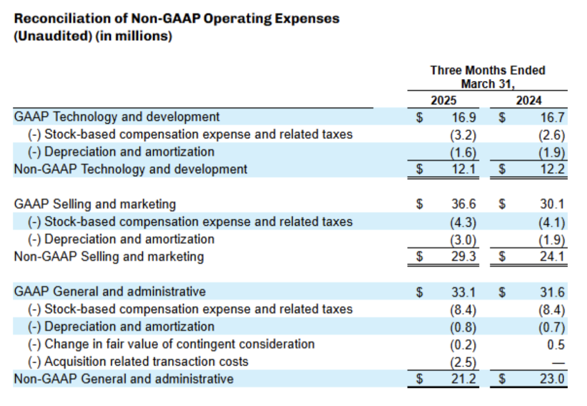 - Non-GAAP Operating Expenses - Non-GAAP Operating Expenses represents GAAP Operating Expenses adjusted by excluding (i) stock-based compensation expense and related payroll taxes, (ii) depreciation and amortization, (iii) acquisition related transaction costs, if applicable, (iv) employee retention costs, such as incentive compensation, associated with acquisition activities, (v) the impact from the change in fair value measurement for contingent consideration associated with acquisitions and (vi) restructuring costs.