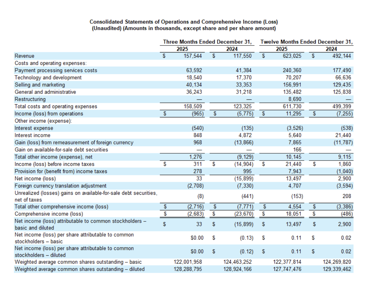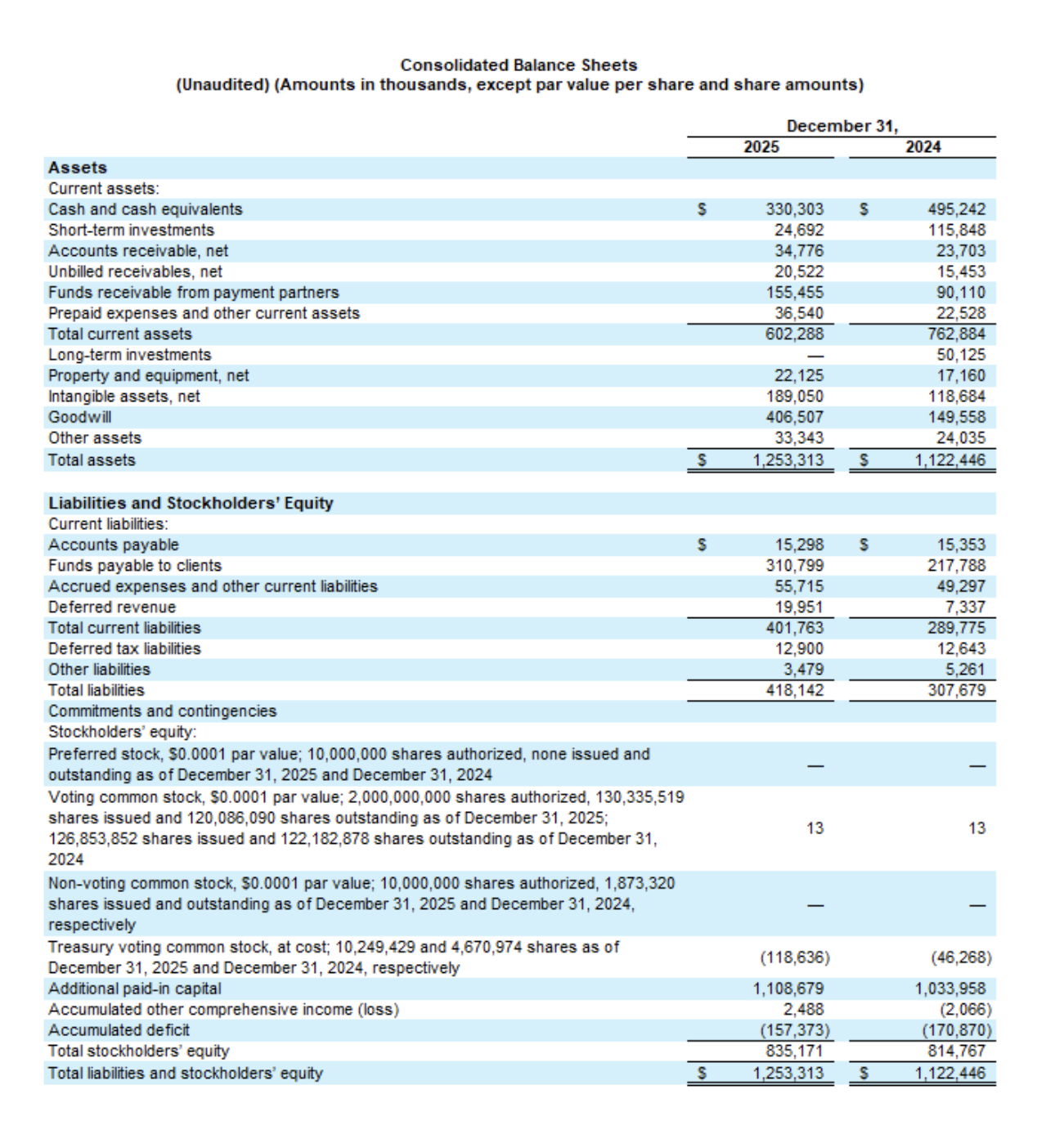 • Total Payment Volume increased 35.6% to $9.3 billion in the Fourth quarter of 2025, compared to $6.9 billion in the Fourth quarter of 2024. Excluding Sertifi, Total Payment Volume increased 31.0% to $9.0 billion in the Fourth quarter of 2025, compared to $6.9 billion in the Fourth quarter of 2024.