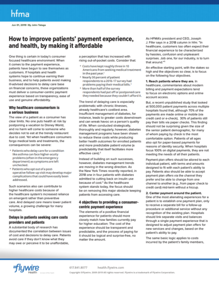 Download the Flywire article published by HFMA that explores the impact of affordability on healthcare decisions and offers four key objectives to providing a more consumer-centric payment experience.